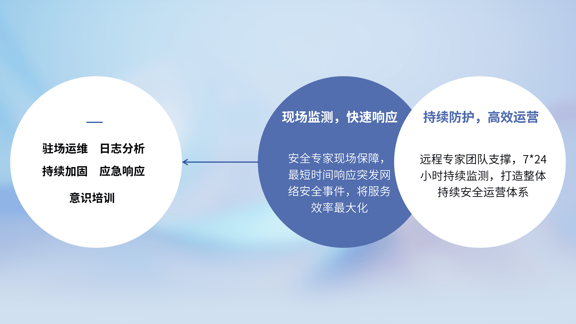 针对客户行业特性,,,,提供专属的一站式安全管理服务,,帮助客户全面感知网络空间威胁,,,,通过安全专家的线上、、、线下防护支持,,,,实现风险闭环,,,,将安全保障常态化,,为客户打造常态化安全运维运营服务。。
